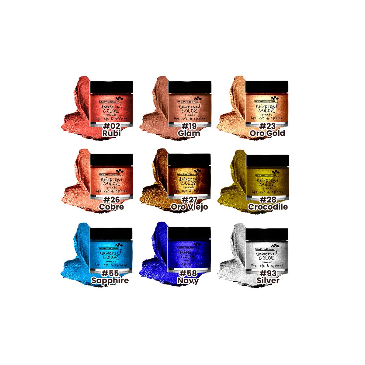 Gama Universal Color Pomade Maproderm, te permite aplicarlo como sombra, delineador para ojos, cejas, labial y rubor.