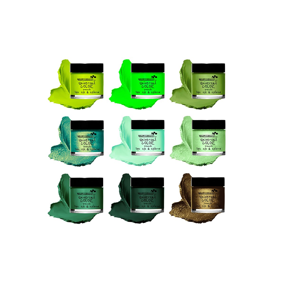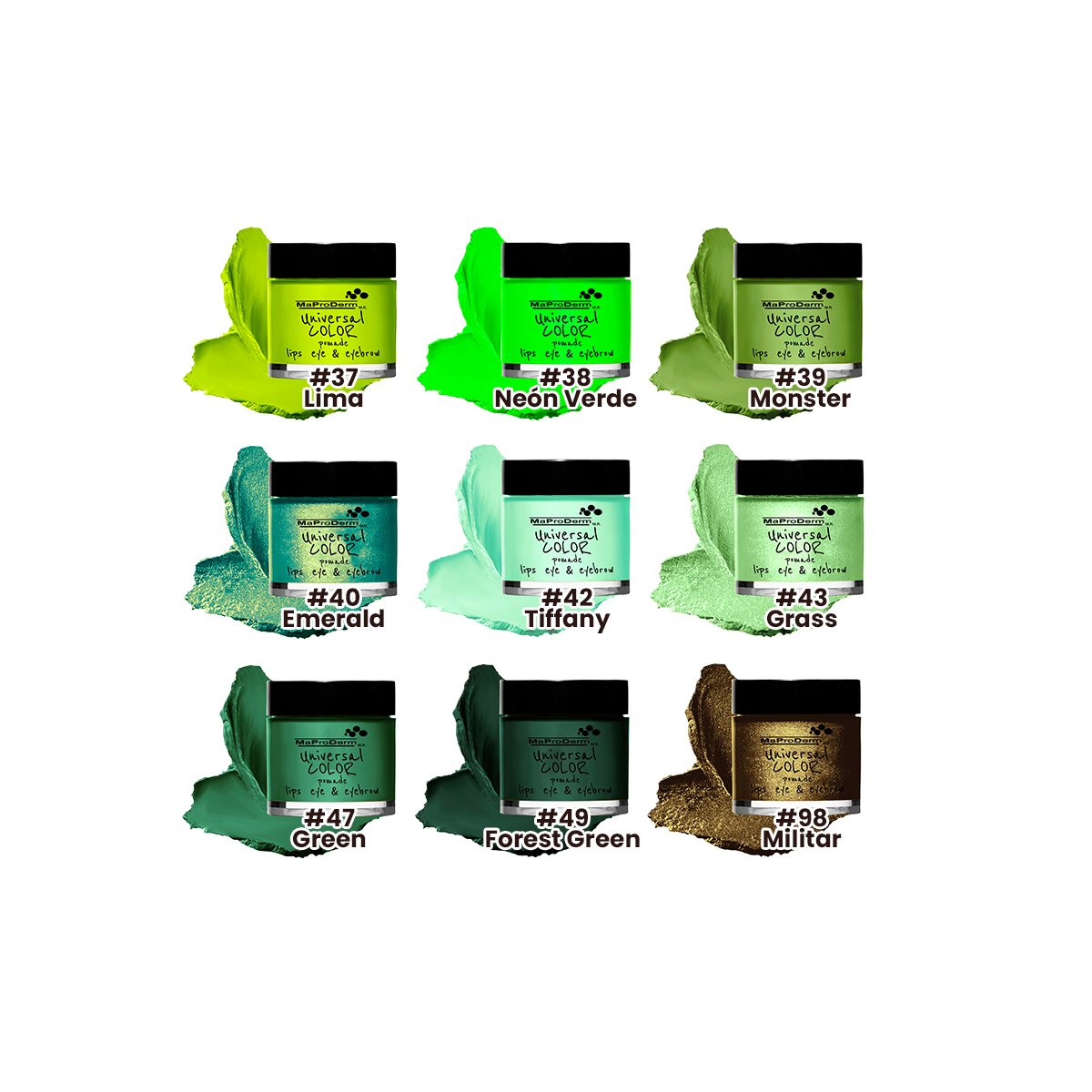 Gama Universal Color Pomade Maproderm, te permite aplicarlo como sombra, delineador para ojos, cejas, labial y rubor.